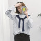 2017春装新款韩版休闲宽松假两件条纹衬衣时尚翻领长袖衬衫女学生