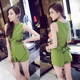 2017夏装新款韩版女装夜店性感露肩V领交叉拼色修身显瘦连衣裙潮