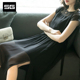 SG2017夏装新款圆领无袖雪纺连衣裙女个性纯色中长裙子修身a字裙