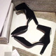 欧美时尚黑色绒面尖头高跟鞋性感中空浅口小码一字带粗跟凉鞋女夏