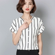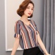 条纹衬衫女2017夏装新款韩版V领雪纺衫上衣T恤夏季韩范短袖衬衣潮