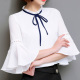 衬衫女2017春装新款韩范女士白色打底蝴蝶结喇叭袖衬衣荷叶边上衣