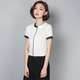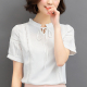 雪纺衫女短袖2017夏装新款韩版立领白色蕾丝荷叶边打底衫上衣衬衫