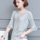 短袖T恤女2017夏装新款韩版条纹宽松百搭夏天雪纺衫女士雪纺上衣