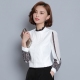 雪纺衫长袖女2017春秋装新款立领白色衬衫春季上衣蕾丝打底衫小衫
