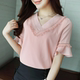 雪纺衫女2017夏装新款女装韩版宽松娃娃领大码短袖衬衫荷叶边上衣