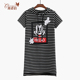 2017夏装新款条纹卡通图案印花中长款连帽棉港味港风宽松t恤女裙