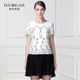 D.F.DEAR/德菲蒂奥喷绘印花双层V领短袖松紧腰修身桑蚕丝连衣裙