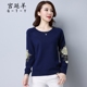 2017春秋装外穿女装刺绣花朵针织衫短款套头圆领羊绒衫女低领毛衣