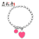 逸彩唐银饰990纯银手链女式爱心形韩版时尚圆转运珠珐琅刻字手串