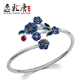逸彩唐S990纯银手镯女款树叶花纹 细款开口珐琅彩民族风甜美手环