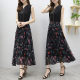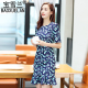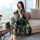 2017夏季新款雪纺印花连衣裙大码修身显瘦V领时尚松紧腰大摆长裙