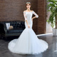婚纱2017夏季新款韩版一字肩显瘦蕾丝收腰鱼尾小拖尾新娘结婚礼服
