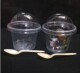 280ml美食美客透明一次性塑料杯、布丁双皮奶杯拱盖小勺配套100套