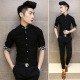 夏花样型男碎花衬衫韩版修身潮流男衬衫时尚百搭夜店5分短袖衬衫
