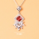 S925纯银项链女 菱形镶钻红宝石方形吊坠银饰锁骨项链时尚礼品