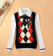 2017春秋小熊少女学院风假两件套衬衫领毛衣女套头大码中学生上衣