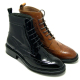 冲冠正品 头层牛皮‖男士尖头英伦系带雕花工装靴子 黑棕短靴