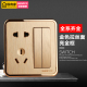 香槟金开关插座面板X6一开五孔插座 五孔带开关双控电源插座面板