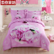 恋你家纺3D磨毛纯棉四件套家纺加厚婚庆全棉被套床单床品大花玫红