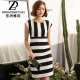 东洲雅莉职场知性女装黑白条纹连衣裙女短袖职业装工作服包臀裙子