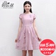 勿忘花2017夏装新款女装气质淑女小清新蕾丝绣花短袖连衣裙夏季女