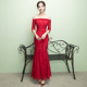 一字肩敬酒服新娘鱼尾长款2017新款夏季红色结婚晚礼服旗袍回门服
