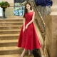 2017新款敬酒服中长款酒红色修身显瘦时尚晚礼服宴会年会礼服裙夏