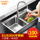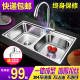 新款加厚SUS304不锈钢水槽15件套餐拉丝双槽洗菜盆洗碗池双盆包邮