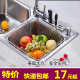 新款加厚304不锈钢水槽套餐拉丝带插刀架双槽洗菜洗碗池双盆包邮