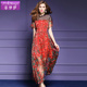 高档婚礼妈妈装真丝印花连衣裙红色礼服夏装2017女大码结婚宴婚庆