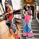 春装女泰国波西米亚碎花民族风图腾印花连衣裙沙滩裙海边度假长裙