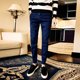 学生百搭款修身型束脚牛仔裤男夏季青少年深蓝中低腰微弹小脚裤子