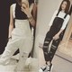 学生女夏BF风卷边高腰吊带九分牛仔裤宽松大码显瘦哈伦裤小脚薄潮