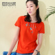 熙世界2017夏装新款 纯色圆领百搭刺绣短袖T恤上衣女装196ST044