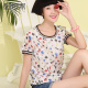 熙世界2017夏季新款简约圆领棉质修身印花短袖T恤女装192ST489