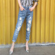 断码处理 超值 全棉牛仔面料磨破九分哈伦牛仔裤女小脚裤宽松