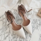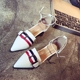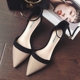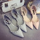 2017春夏新款欧美优雅后绑带尖头小单鞋中跟女鞋细跟浅口凉鞋女夏