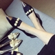 2017夏季新品欧美显瘦百搭一字扣铆钉中跟单鞋女鞋尖头粗跟凉鞋女