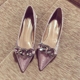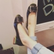 2017春夏新款欧美绒面显瘦一字扣水钻尖头中跟单鞋浅口细跟凉鞋女