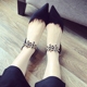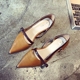 2017欧洲站女鞋春季新款时尚金属链子百搭尖头鞋舒适平底单鞋女潮