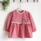 2017春款阿喜和悦棉麻格子儿童罩衣 女童罩衫宝宝防水婴儿饭衣