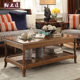 御木匠 美式全实木茶几简约 欧式客厅大容量双层储物茶桌组合包邮