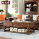全实木简约美式乡村复古茶几欧式客厅户型家具带抽屉茶桌整装包邮