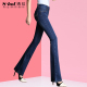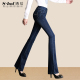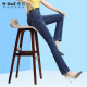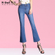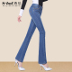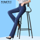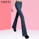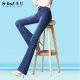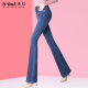 弹力中年女裤子高腰微喇牛仔裤女直筒长裤加肥大码胖MM阔腿喇叭裤