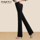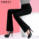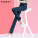 高腰弹力中年直筒微喇牛仔裤女修身显瘦黑色长裤大码胖MM宽松裤子