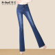 2016新款女装直筒小微喇牛仔裤女中腰修身显瘦长裤喇叭裤弹力裤子