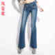 风姿歌 2017夏季潮流大码长裤 民族风微喇叭高腰修身牛仔裤女装