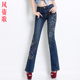 风姿歌 2017高腰百搭民族风刺绣花牛仔裤女装微喇有大码弹力长裤