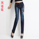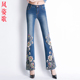 风姿歌 2017夏季修身大码民族风弹力印花刺绣花牛仔裤女微喇长裤